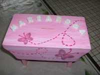 Um banquinho mealheiro, com técnica decapé e umas borboletas esvoaçantes...